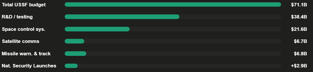 The single most consequential development for space investors this week came from the Pentagon, not a company filing. The Trump administration's FY2027 defense budget proposal, released April 21, allocates $71.1 billion to the U.S. Space Force, up from $31.6 billion in the current fiscal year. That is a 124% year-over-year increase, described by officials as a "once in a generation" push for space superiority. The satellite communications line alone is up 60%, and missile warning/tracking is up 70%. Space control systems (the activities required to contest and dominate the orbital domain) are allocated $21.6 billion, a 158% increase from FY2026. Additionally, procurement funding for the Space Force would surge a staggering 430% from $3.6 billion to $19.1 billion. The budget also includes an additional $2.9 billion for National Security Space Launches, earmarked to procure 22 new launches. The Space Force would also hire 2,800 new "Guardians," growing headcount by roughly 20%. The caveat: Congress must still approve this request. Defense analysts note that midterm election dynamics and fiscal hawks in both parties could trim the final numbers. But even at 60–70 cents on the dollar, this proposal represents a structural step-change in space sector revenue visibility. USSF Space budget Full coverage via Stars & Stripes ↗ Air & Space Forces Magazine analysis ↗ Commercial tech integration breakdown ↗ |